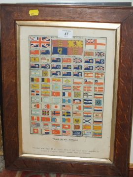 A QUANTITY OF PICTURES AND PRINTS TO INCLUDE A VINTAGE OAK FRAMED FLAG PRINT, ANDRE JEWELL PRINT ETC.