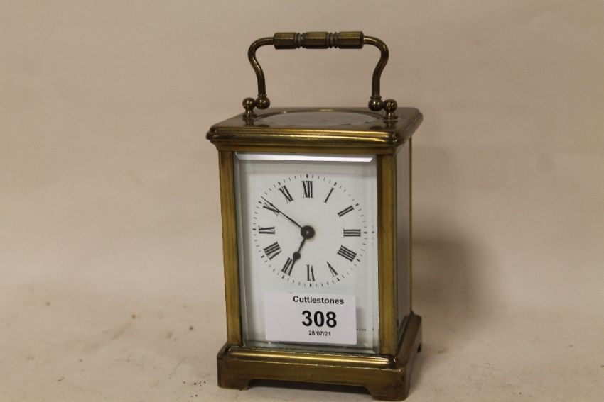 A SMALL CARRIAGE CLOCK