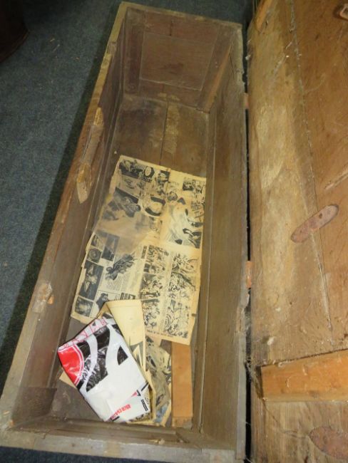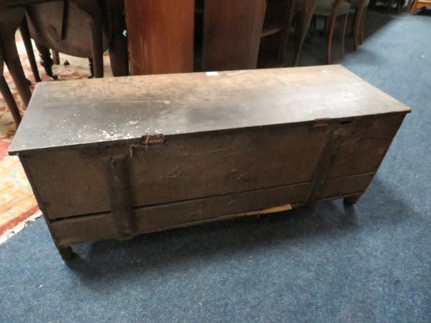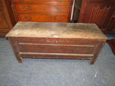 AN ANTIQUE OAK SMALL COFFER W-106 CM A/F