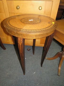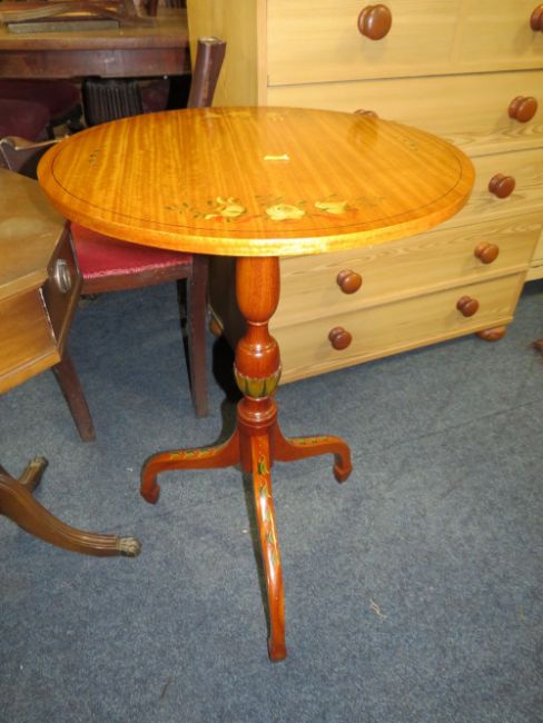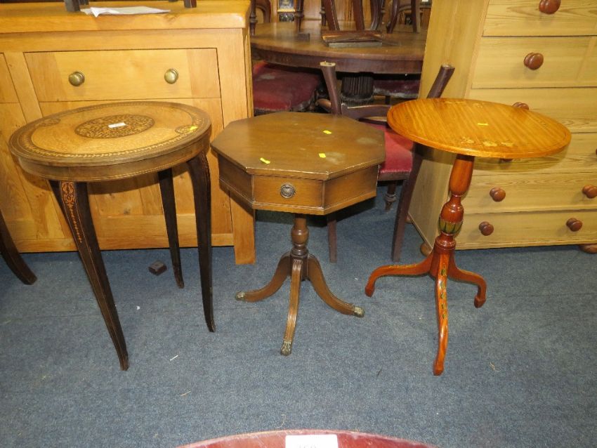 THREE REPRODUCTION OCCASIONAL TABLES INCLUDING 2 INLAID AND PAINTED EXAMPLES (3)