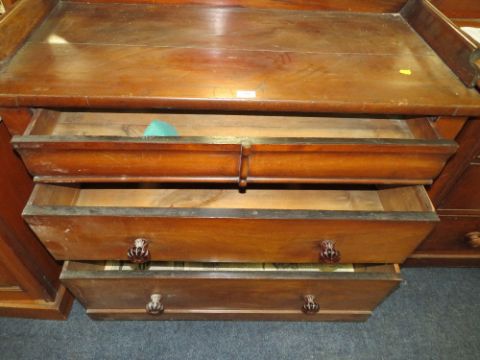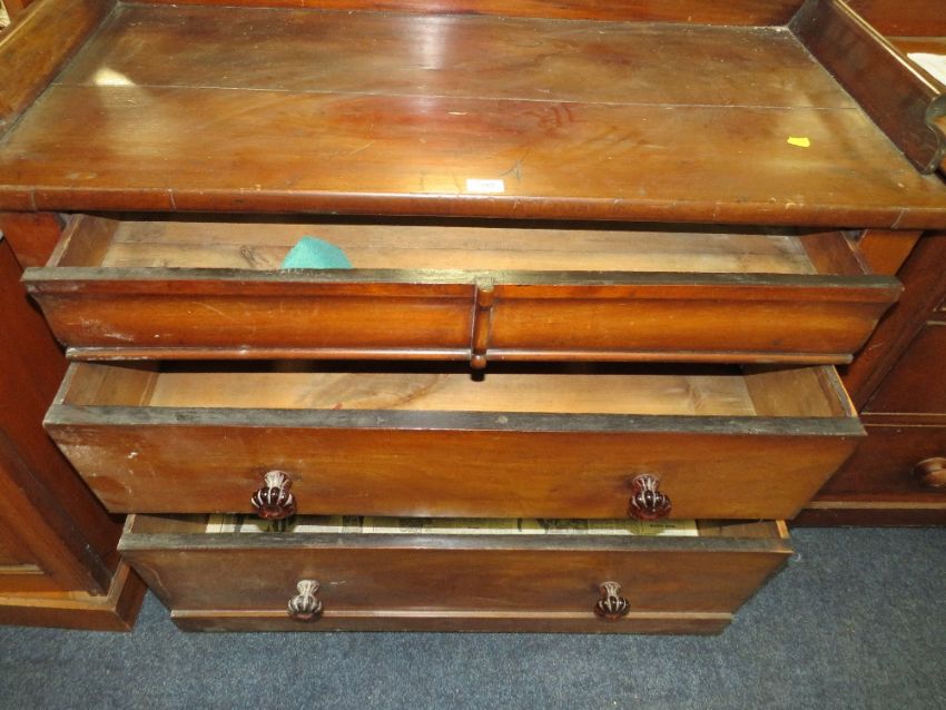 A VICTORIAN MAHOGANY THREE DRAWER TRAY TOP CHEST H- 100 CM W- 112 CM