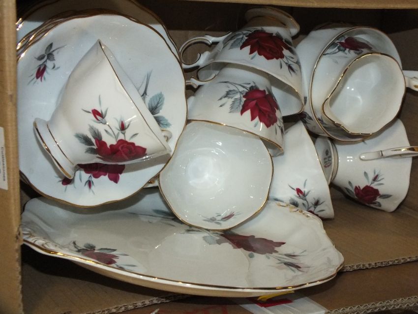 A BOX OF ROYAL ALBERT SWEET ROMANCE CHINA TO INCLUDE TRIOS