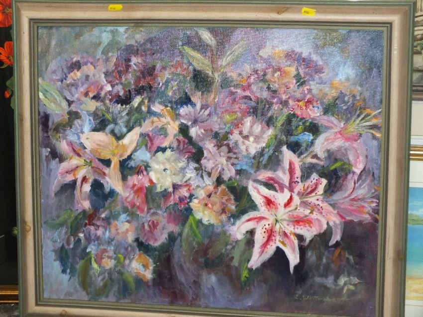 A COLLECTION OF ASSORTED PICTURES AND PRINTS TO INCLUDE STILL LIFE STUDIES OF FLOWERS, WATERCOLOUR OF A BEACH SCENE ETC. (7)
