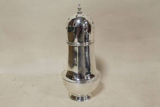 A HALLMARKED SILVER SUGAR CASTER OVERALL HEIGHT -17CM