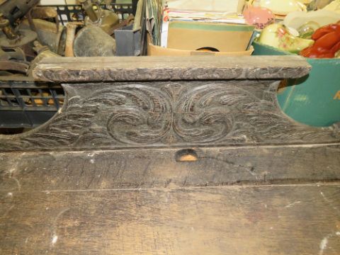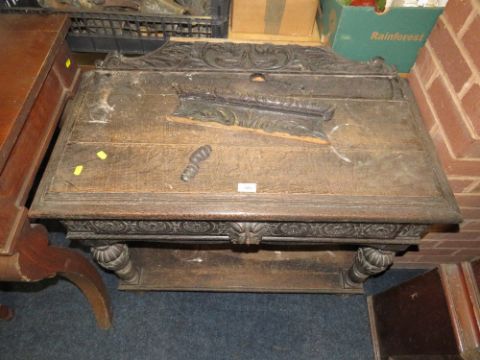 A VICTORIAN CARVED OAK SIDE TABLE WITH SINGLE FRIEZE DRAWER H-78 CM W-92 CM A/F