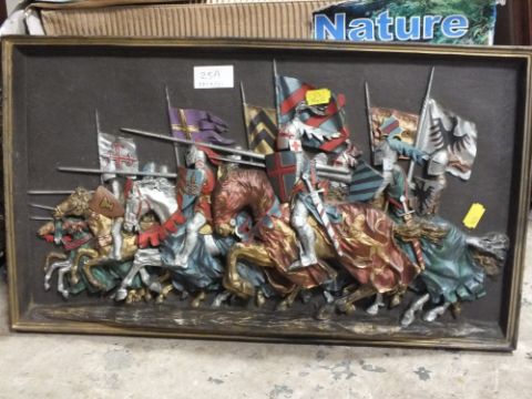 A 3D PICTURE OF KNIGHTS CHARGING INTO BATTLE - OVERALL SIZE 29CM X 51CM