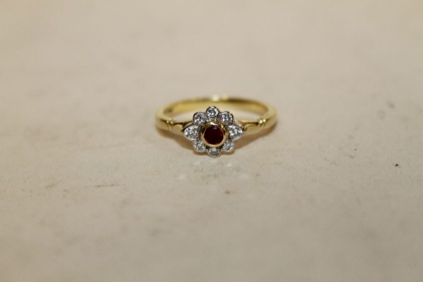 A HALLMARKED 18 CT GOLD RUBY AND DIAMOND RING, APPROX WEIGHT 2.9 G