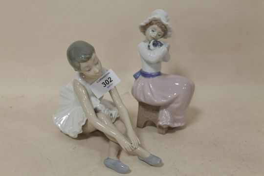 A NEO FIGURE OF A BALLERINA TOGETHER WITH A FIGURE OF A GIRL WITH A PUPPY
