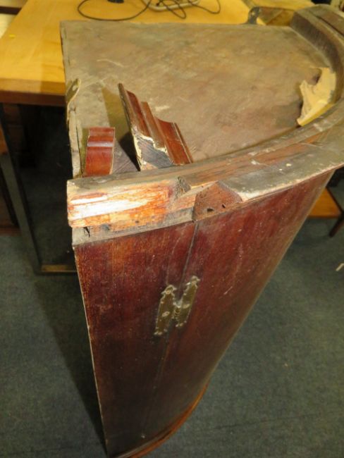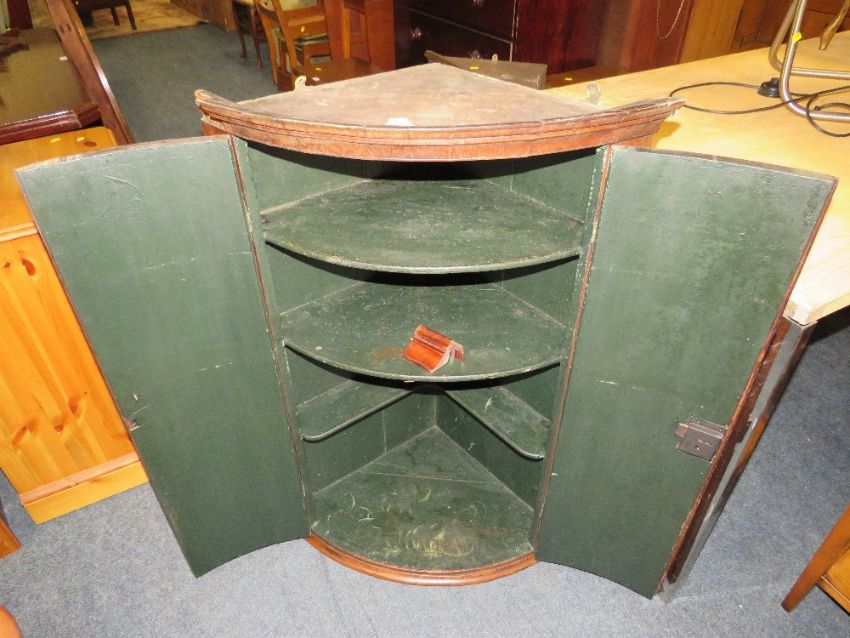 A NINETEENTH CENTURY MAHOGANY HANGING CORNER CUPBOARD