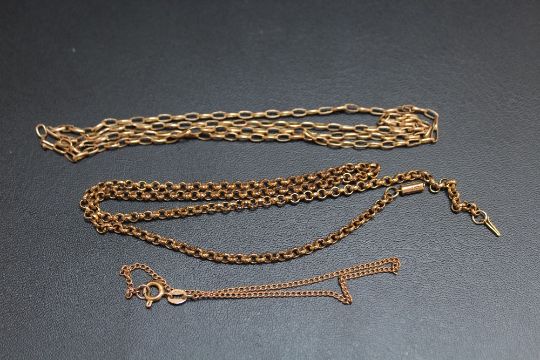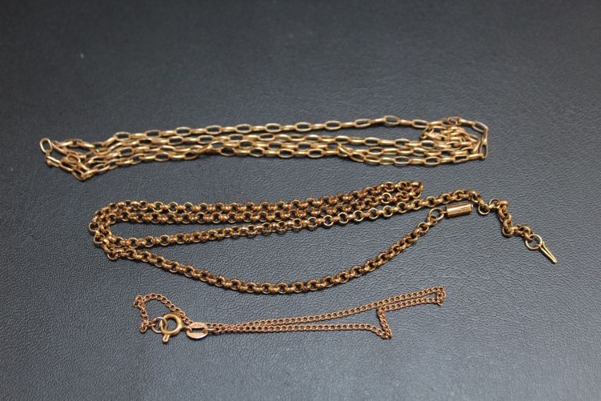 THREE 9 CARAT GOLD CHAINS, approx combined weight 11.1g