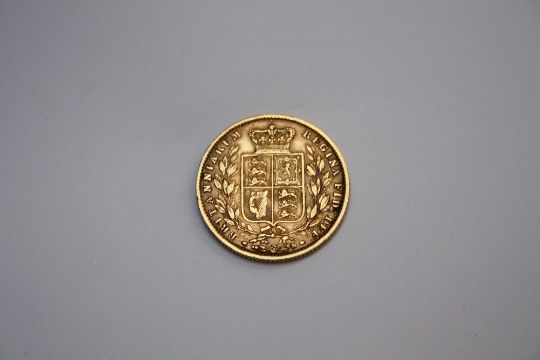 A VICTORIAN GOLD SOVEREIGN DATED 1862 - SHIELD BACK