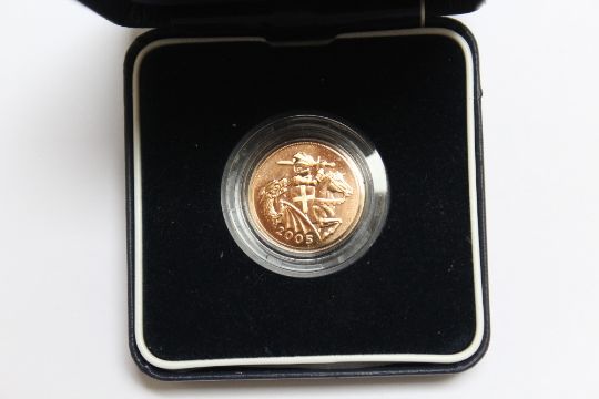 A CASED ELIZABETH II 2005 GEORGE AND THE DRAGON BACKED GOLD SOVEREIGN