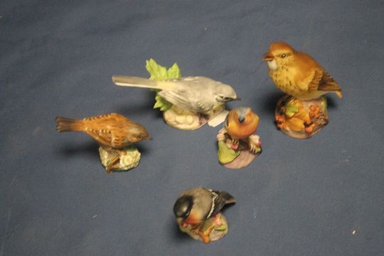 FIVE ROYAL WORCESTER BIRD ORNAMENTS
