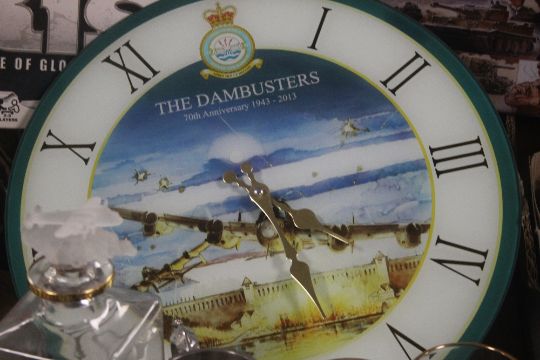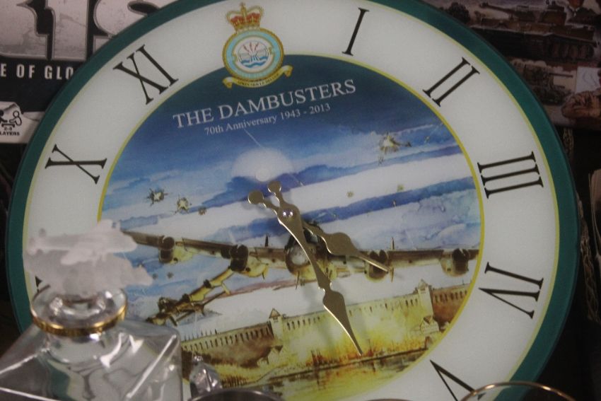 A TRAY OF MAINLY AVIATION INTEREST GLASSES, TANKARDS ETC