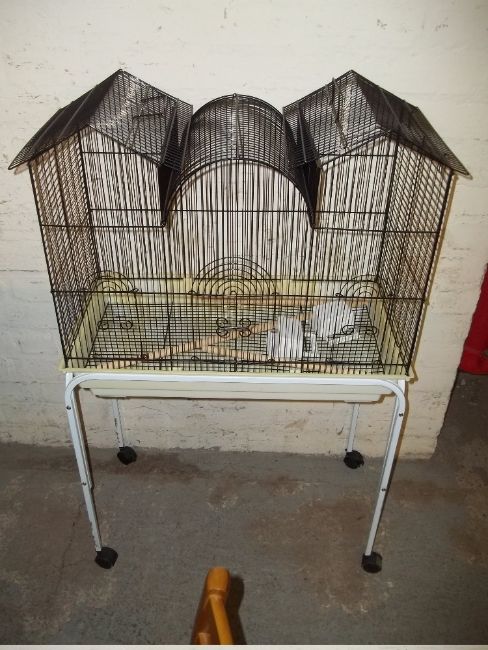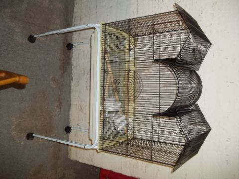 A BIRD CAGE AND STAND