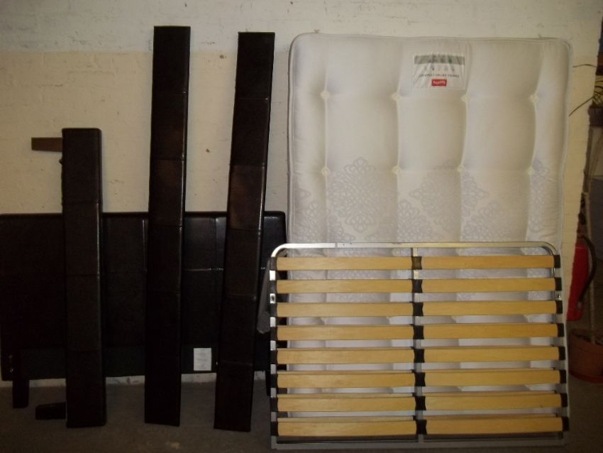 A DOUBLE FAUX LEATHER BED FRAME AND MATTRESS