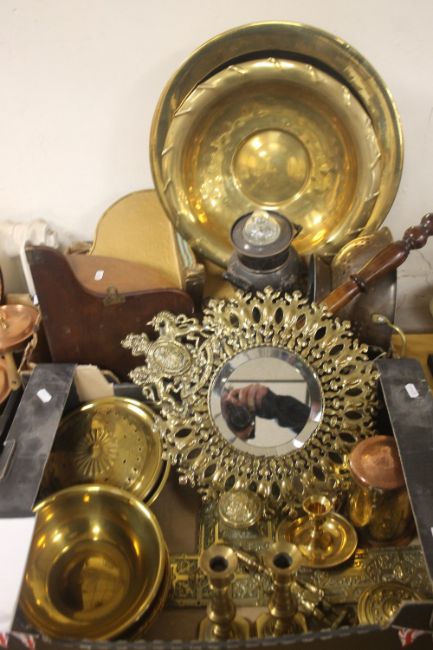 TWO TRAYS OF SUNDRIES AND METALWARE TO INCLUDE A BRASS BOWL ETC (TRAYS NOT INCLUDED)