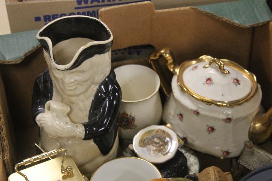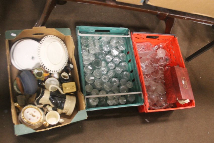 TWO TRAYS OF CERAMICS AND GLASSWARE (TRAYS NOT INCLUDED)