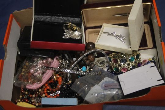A BOX OF ASSORTED COSTUME JEWELRY
