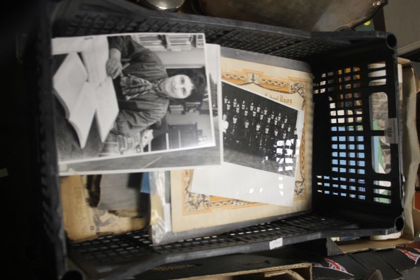 TWO TRAYS OF EPHEMERA AND PHOTOGRAPHS, TO INCLUDE MILITARY AND TRANSPORT INNTEREST