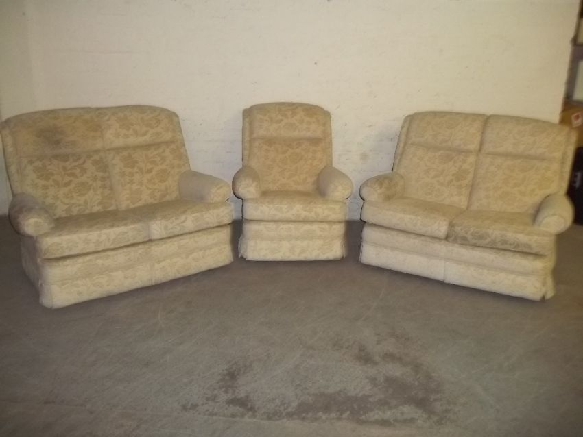 A FABRIC 3 PIECE SUITE MEASURING OF 2 SEATERS SOFAS AND AN ARM CHAIR BY PARKE KNOLL