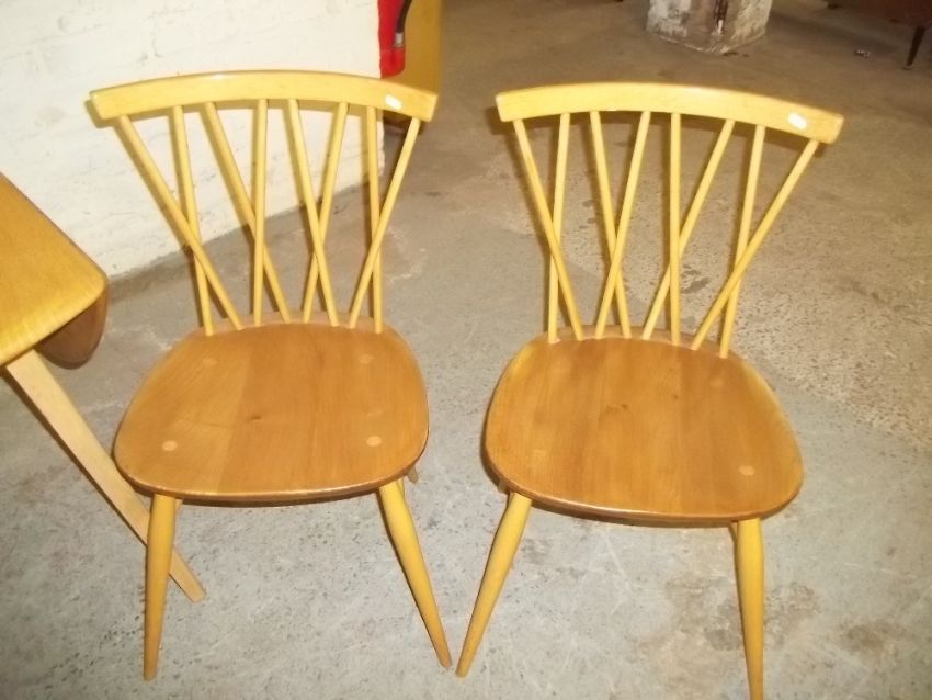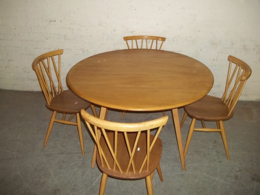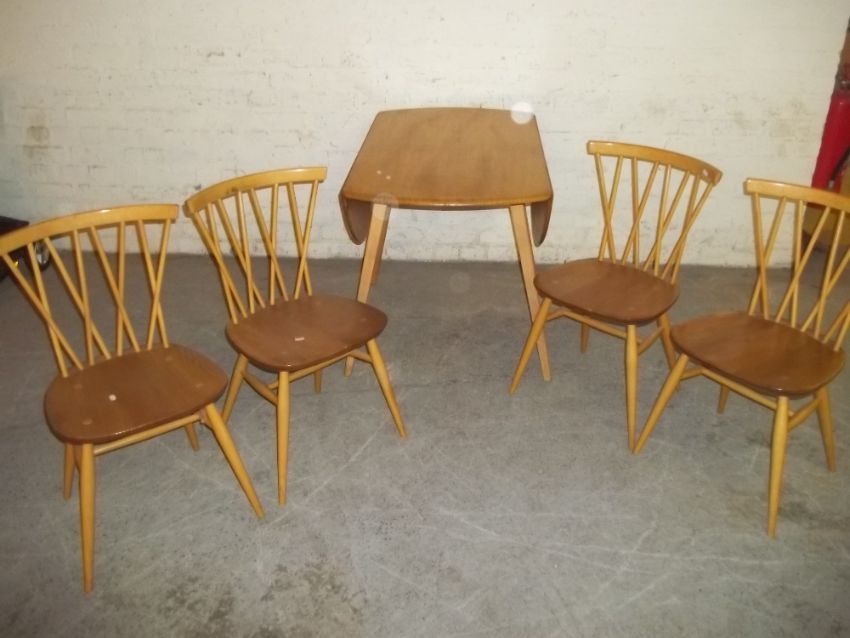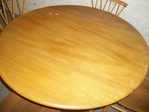 A LIGHT ERCOL STICK BACK DROPLEAF DINING SET