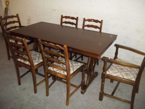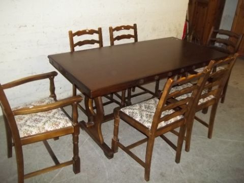 A DARK OAK TUDOR DINING SET A/F