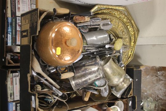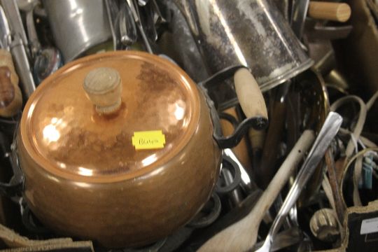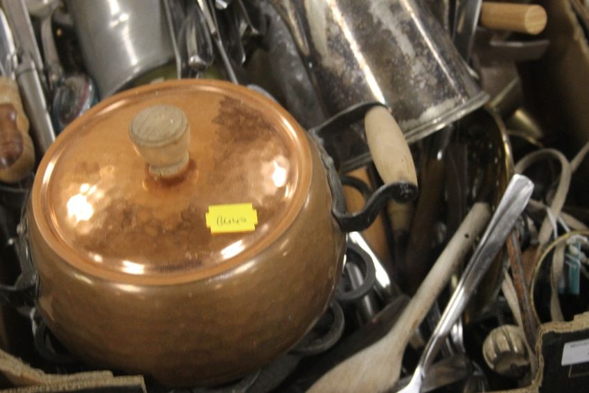 A RETRO FONDUE SET AND A COLLECTION OF METALWARE (TRAYS NOT INCLUDED)