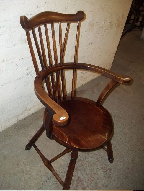 AN ANTIQUE STICK BACK OCCASIONAL BOWED DINING CHAIR