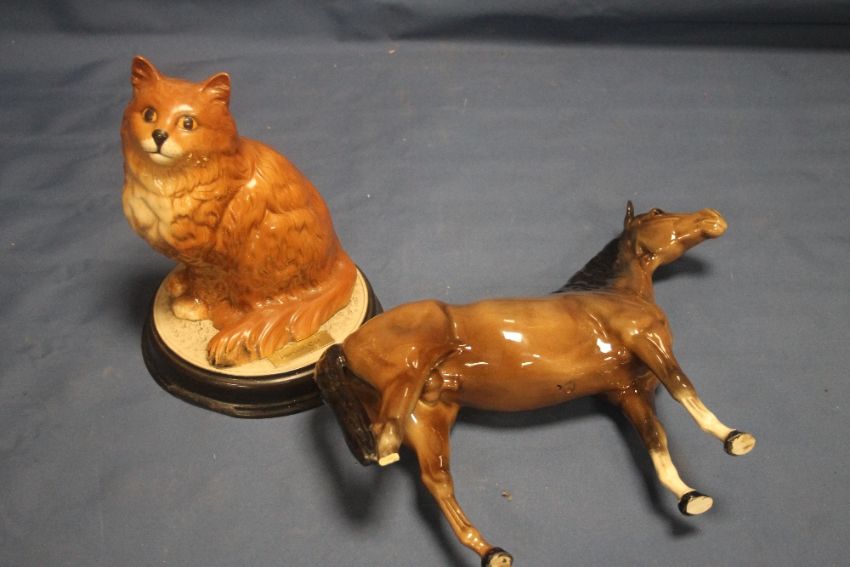 A BESWICK PERSIAN CAT TOGETHER WITH A BESWICK HORSE A/F