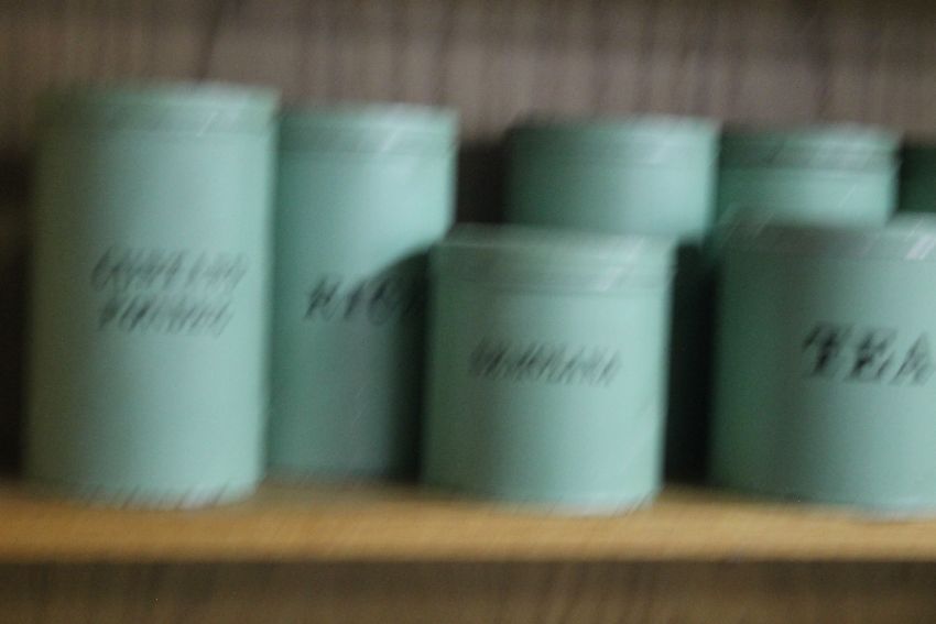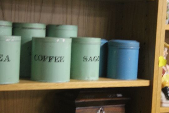 A SET OF 1940'S GREEN PAINTED TIN KITCHEN STORAGE JARS