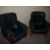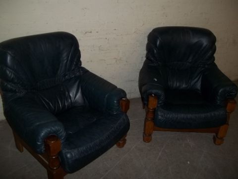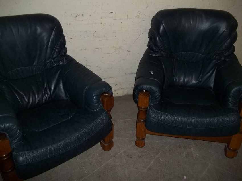 TWO MODERN LEATHER AND OAK EASY CHAIRS