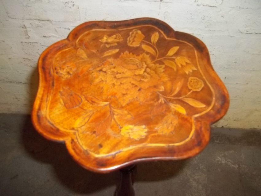 AN ANTIQUE INLAID TORCHERE PLANT STAND