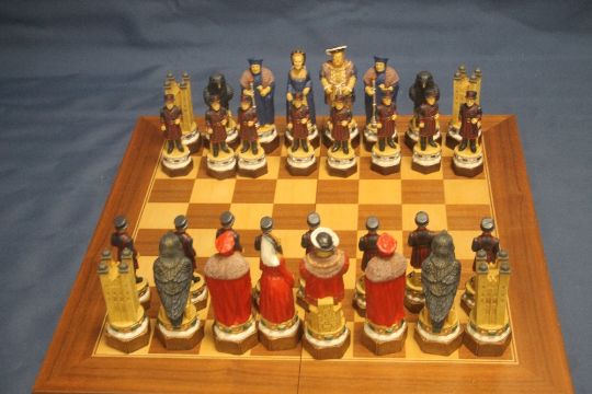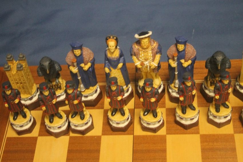AN UNBOXED A 194S THE WHITE TOWER HAND DECORATED CHESS SET