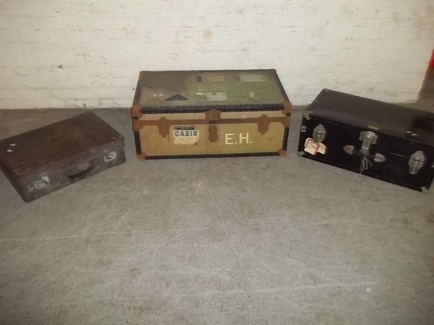 TWO TRAVEL TRUNKS AND A LEATHER CASE