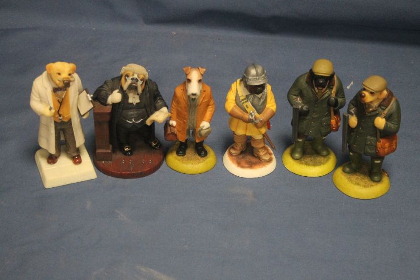 SIX ROBERT HARROP DOGGIE PEOPLE FIGURES TO INCLUDE A JUDGE, DOCTOR, GAME KEEPERS ETC