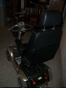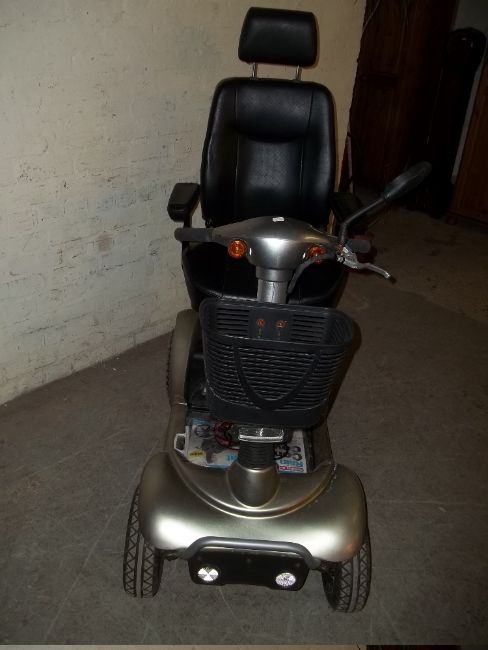 A PROWLER TWIN SPEED MOBILITY SCOOTER FITTED WITH 20 INCH WIDE CAPTAINS SEAT AND ALLOY WHEELS