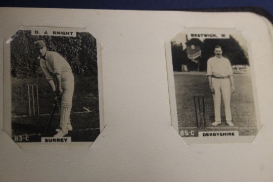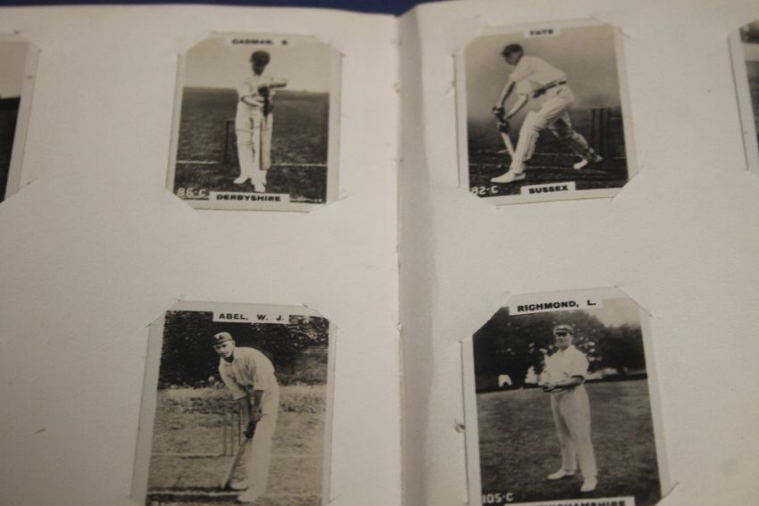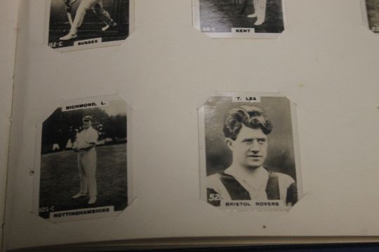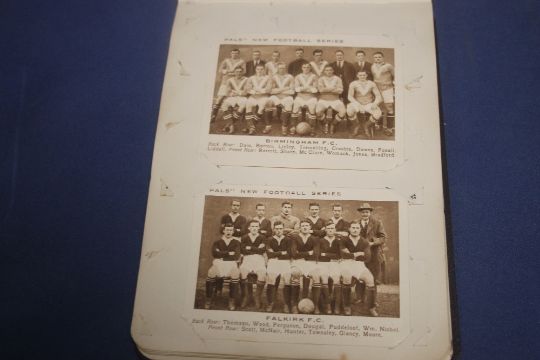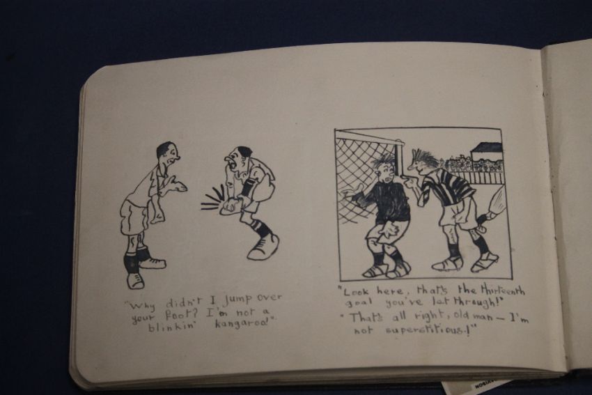 AN EARLY 20TH CENTURY FOOTBALL INTEREST ALBUM CONTAINING HAND DRAWN CARTOONS A SELECTION OF PALS NEW FOOTBALL SERIES CARS AND PINNACE PHOTOS OF FOOTBALLERS ALONG WITH SOME CRICKETERS ETC