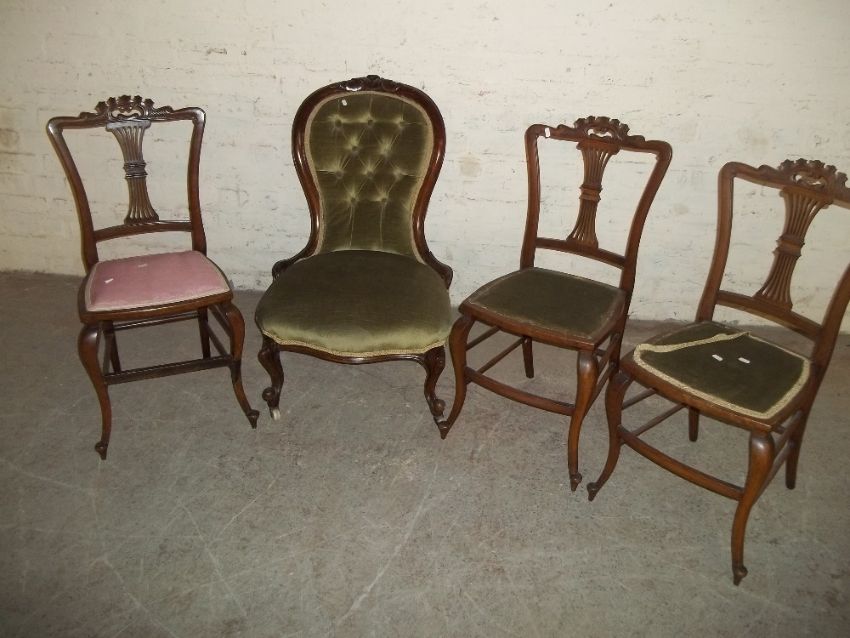 FOUR ANTIQUE OCCASIONAL DINING CHAIRS TO INCLUDE 1 BEDROOM CHAIR