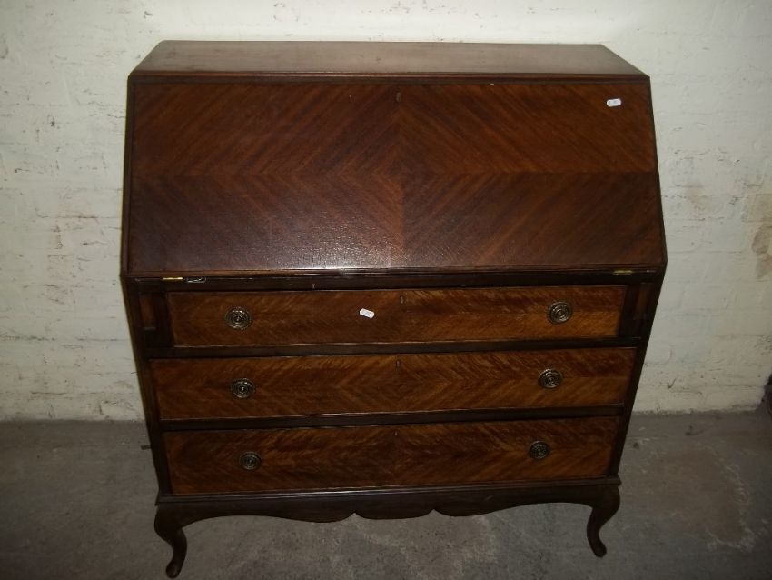 A BUREAU WITH LEATHER INLAY