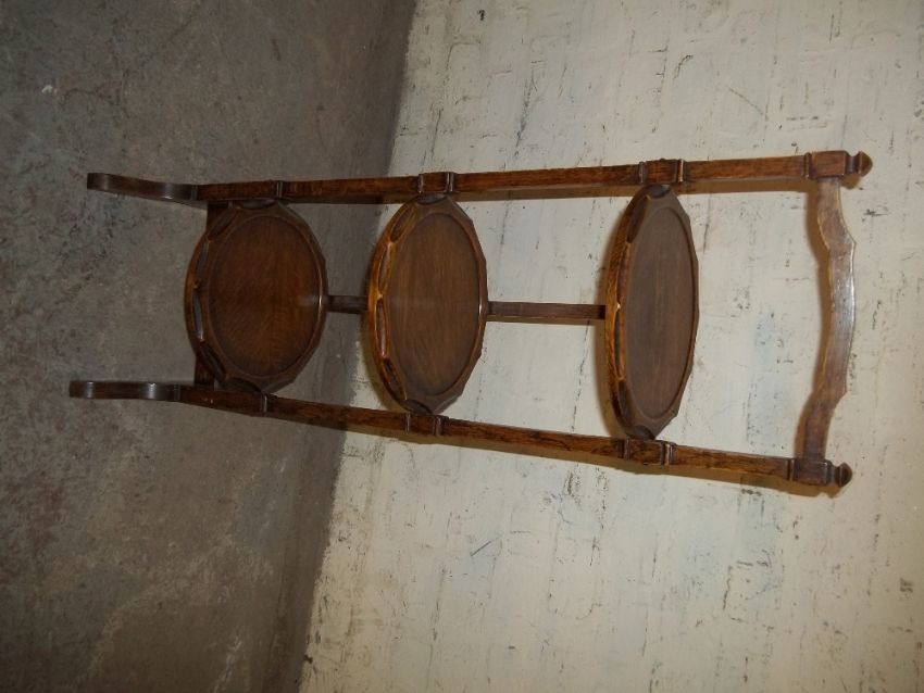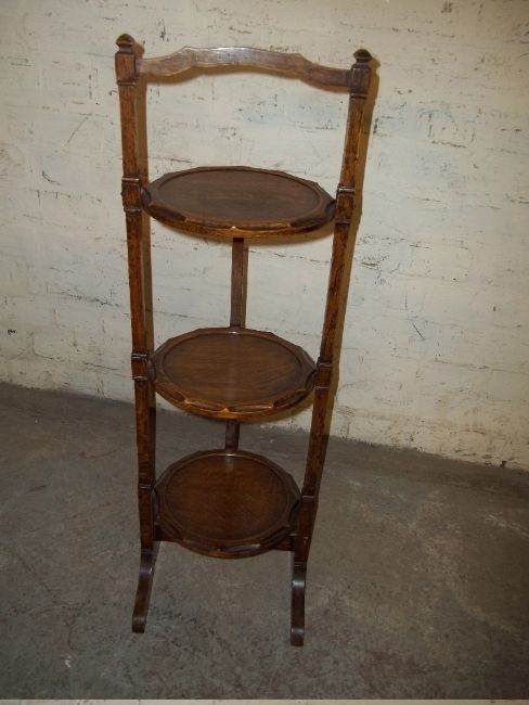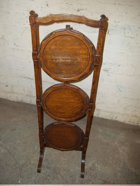 AN ANTIQUE OAK DUMB WAITED CAKE STAND