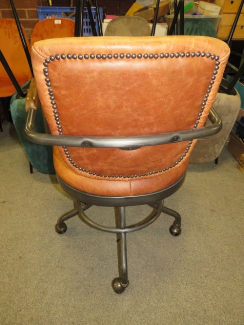A RETRO STYLE BROWN LEATHER SWIVEL OFFICE ARMCHAIR