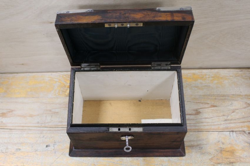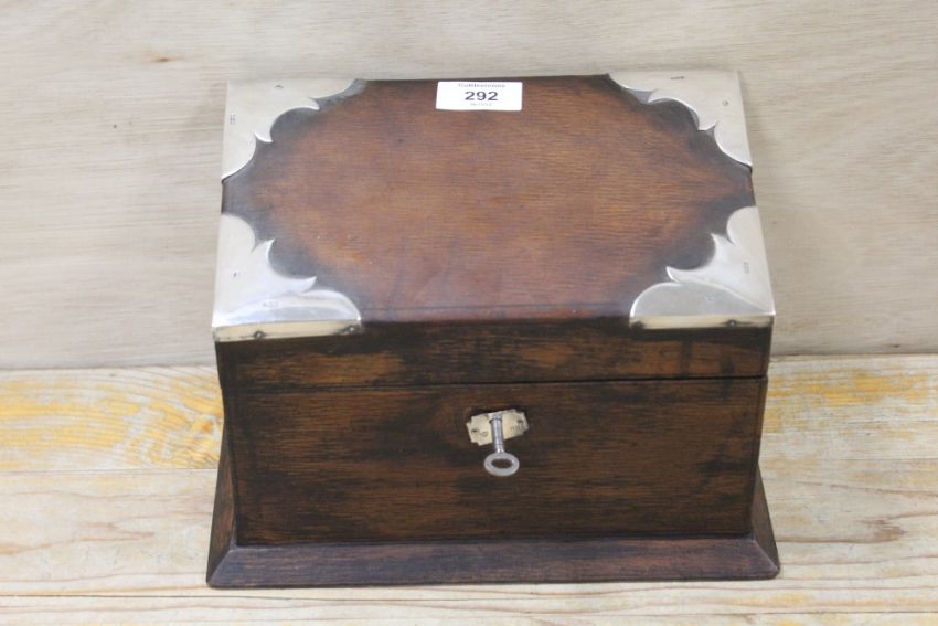 A HALLMARKED SILVER MOUNTED WOODEN LETTER BOX