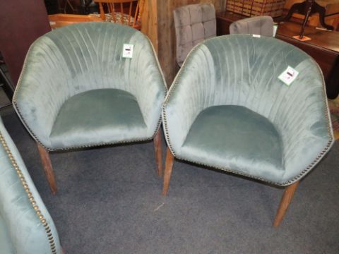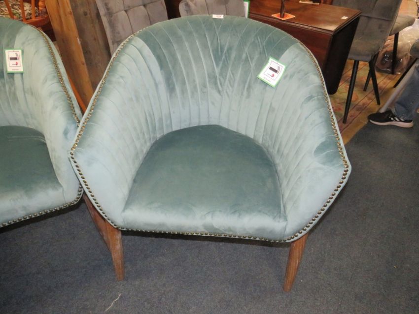 A PAIR OF MODERN UPHOLSTERED VELVET CLUB CHAIRS IN TEAL (2)
