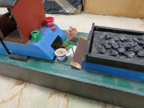 A LARGE HAND BUILT WOODEN MODEL OF A BARGE - L 128 CM
