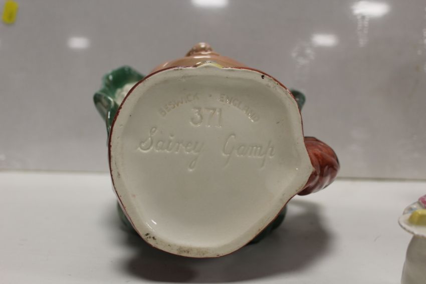 A BESWICK BEATRIX POTTER BENJAMIN BUNNY, BESWICK SHELL VASE AND BESWICK SAIREY GAMP CHARACTER JUG ETC (4)