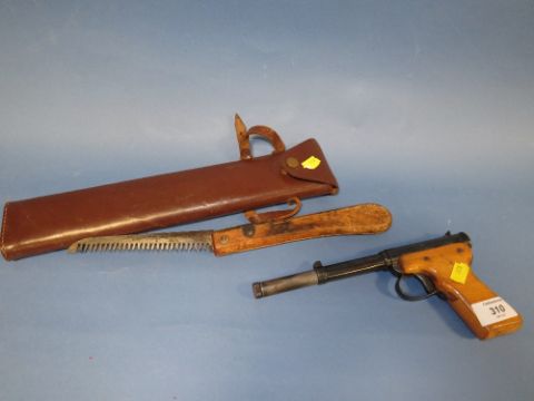 A VINTAGE MOD 2 GAT GUN TOGETHER WITH A CASED FOLDING SAW (2)