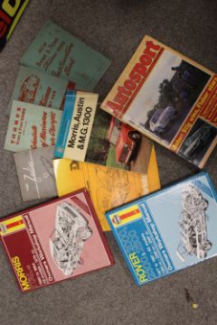 TWO BOXES OF MOTORING RELATED. WORKSHOP MANUAL, HAYNES MANUALS AND MOTORSPORT MAGAZINES ETC