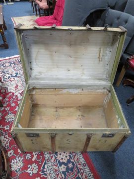 A VINTAGE DOMED AND BANDED STEAMER TRUNK - W 88 CM