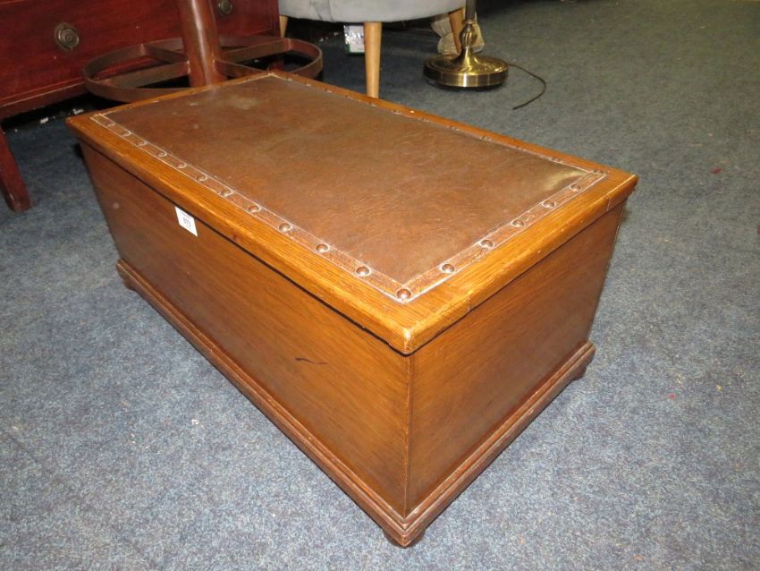 AN OAK BOX WITH UPHOLSTERED TOP - W 64 CM
